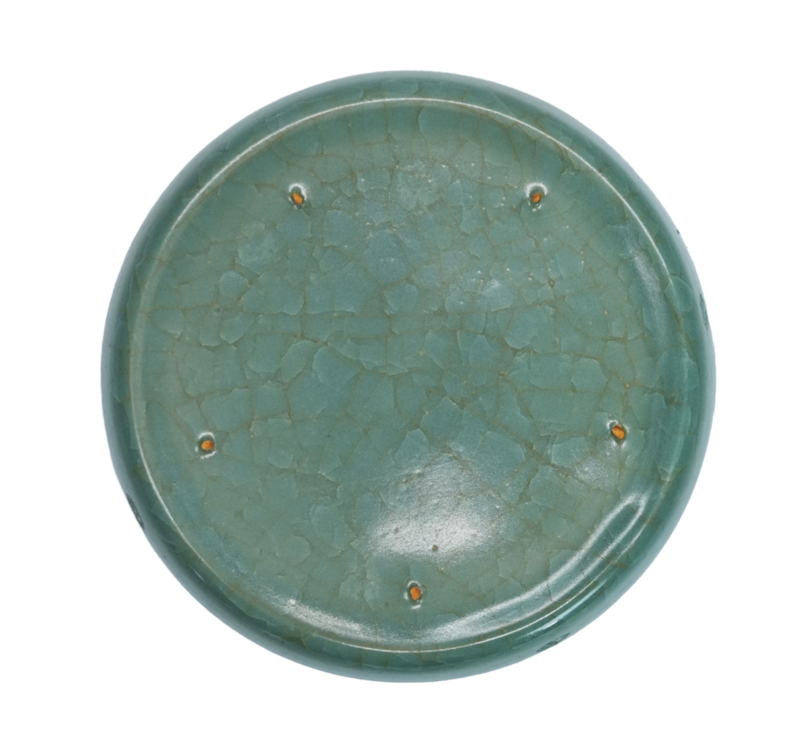 on five tiny spurs during firing, leaving minute sesame-shaped marks on the base—an identifying
